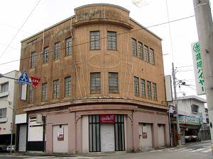 市内でも旧市街の雰囲気を留める建物群の中にひときわ異彩を放つ建物。ネオン細工からどうしても用途を探りづらい施設ですが、地元の百貨店として使用されていた施設のようです。縦長の窓のデザインや角部分にアールをとり玄関を置いているところなどは、戦前期の商業建築ならでは、といった雰囲気を感じさせます。