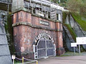 坑口の形式としては、JR本線によくある明治製の鉄道トンネルにも近似していますし、炭鉱のそれにも当然ではありますがきわめて近似しています。なかなか気づきにくいところですが、坑口ファサードの上には神棚が現在も置かれています。山の神を信奉する人々の思いが現在も息づいているようです。