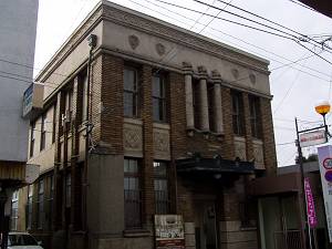 川沿いの銀行建築。お約束の展開として角部は面取され、玄関が設けされていたようです。軒部分の過剰な意匠を見る限り、大正というよりも明治期の事務所建築に近いものがあります。左右部は非対称でごちゃごちゃした表現も多く、地元の建築家、あるいは大工による作品ではないかと私は推察します。