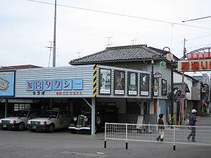 すっかり観光地化した感もある旧豊後高田駅の駅舎に面し、駅前の風情を今に遺した施設。木造建築の雰囲気をそこかしこに留めてはいるのですが、前面に張り出したタクシープールの天井のために、建物の存在感が薄れがちとなり、少々残念な例となっています。