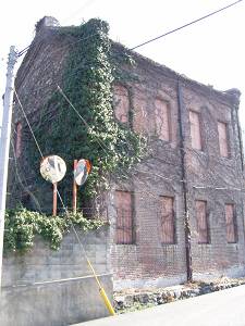 地図で確認してみたところ、この建物は工場の敷地外に位置づけられています。隣には工場付属のお稲荷様。他の文献から考察して、私はこれを変電所ではないかと推察しています。