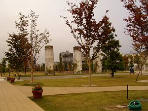 かつてノリタケが都市型工場として気勢を上げていた頃の遺跡。まさに遺跡という表現がふさわしく、周辺には工場の痕跡を示す基礎遺構がそのままの形で、または再利用という形で保存されています。6本の煙突は、もちろん実際に工場が稼働していた時の煙突で、その基礎部分約8mが象徴的存在として現在遺されています。