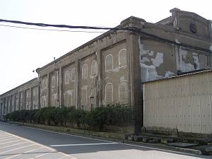 明治の建物と言うこともあり、よくあるコンクリート造工場建築の典型から離れ、切妻部分にまで及ぶ越屋根には丸窓が施されています。試行錯誤のあとは柱の多さなどにも見られ、先取の気風を今に伝える典型的建物だと思います。外壁は剥落が見られ、今後が少し心配な要素も感じさせます。(工場資料.)