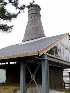 普段は工場の奥に隠れており、また工場内部からはその威容を確認することが難しい作品です。徳利窯付近からはこのように全容を把握する事が出来ます。活用次第によればかなり見栄えのする姿に生まれ変わることも可能ではないでしょうか。(工場資料.)
