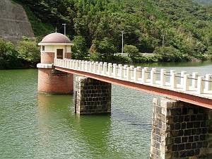 下関の水道需要増大によって拡張された第2貯水池の取水塔。ほぼ当時のまま遺されていると言うことで、土木学会の遺産リストではAランクの判定を受けています。確かに1号貯水池の取水塔よりもデザイン性に富み、厳然と湖畔に浮かぶ姿は、孤独な軍人を思わせます。