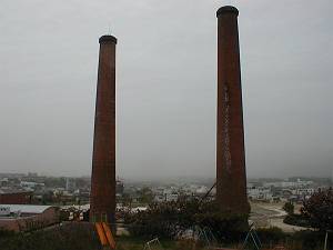 二本煙突というと、地元のご年配の方でも田川伊田の煉瓦造大煙突を紹介しますが、華こそないもののこちらも立派な煙突。三井田川の中でも伊加利坑は最終期まで操業が行われていた炭鉱で、今でも若干の鉄筋コンクリート造り遺構が遺っています。これもそれらのうちのひとつです。