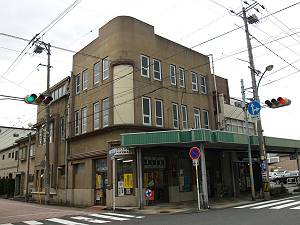 シンメトリーの外観と一階部分の壁を強調させる造りが実に不思議な感じを覚えますが、2階正面のある種古典な窓構成、また軒部分の仕上げが分離派調の雰囲気を見せていたので、あるいは戦後初期の建物かと思い掲載したのですが、投稿があり1970年代の建築だとのこと。半分びっくりしながらも、なるほどと感じ入る部分もあり、実に不思議な心持ちです。