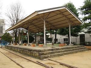 大振りのホームを移築復元した建物。ホームの基礎部も当時使用されていた構造のようで、ここまでわざわざ移築しておいて、車両を展示していない公園は、かえって珍しいと言えます。双頭レールで構成されているホーム上屋を保存する例はなかなか少なく、それだけでも基調なのですが、一般受けはしないのでは、と考えてしまいます。展示方法次第では、もっと人気のある場になるのではないでしょうか。このままでは、もったいない施設のひとつです。(鳥取市ウェブサイト.)
