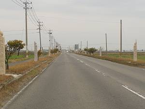 ひたすらまっすぐ延びていく道路。なるほどこれは滑走路だと感じてしまいがちですが、道路そのままが滑走路というわけではありません。往時の航空写真から判断すると、元々あった滑走路南端の一部を利用してこの道路が整備されたようです。ま、よくよく考えると飛行機の滑走路がこんなに幅狭いとは想定しづらいですな。