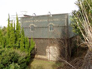 その施設内にあって、一番装飾性に富んだ建物と言えるのがこの作品。無粋に金網で保護されてはいましたが、外壁は自然石、しかも窓や扉回りを色違いの石で装飾し、、、これだけは残しておいて欲しかったです。残念です。(41.)