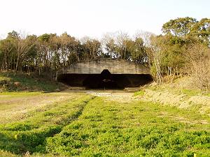 この地区に残る掩体壕はほかにも数基あるようです。それらの中でもこの壕は、比較的大型の陸軍攻撃機を格納するためのものでした。(現地案内板.)